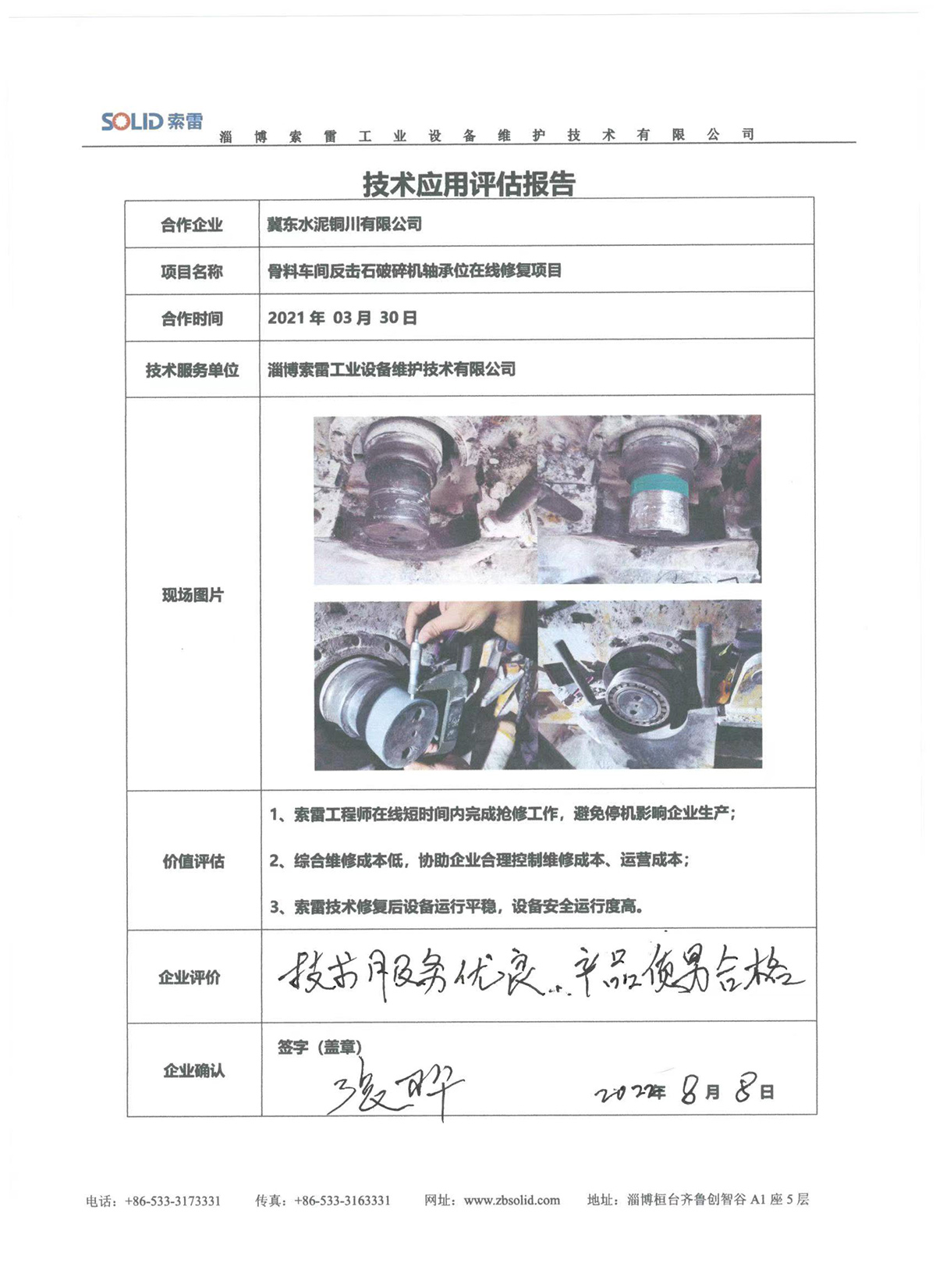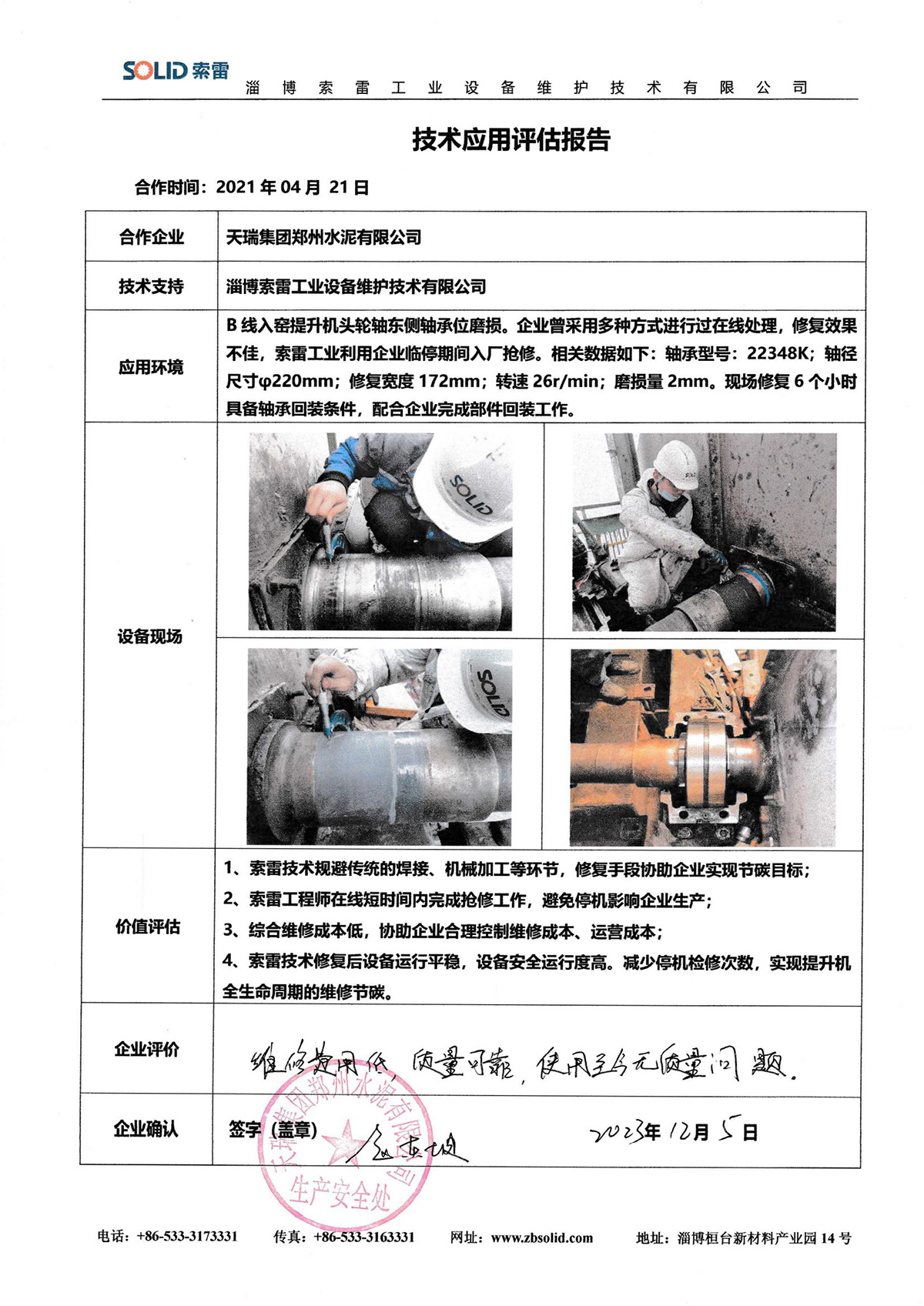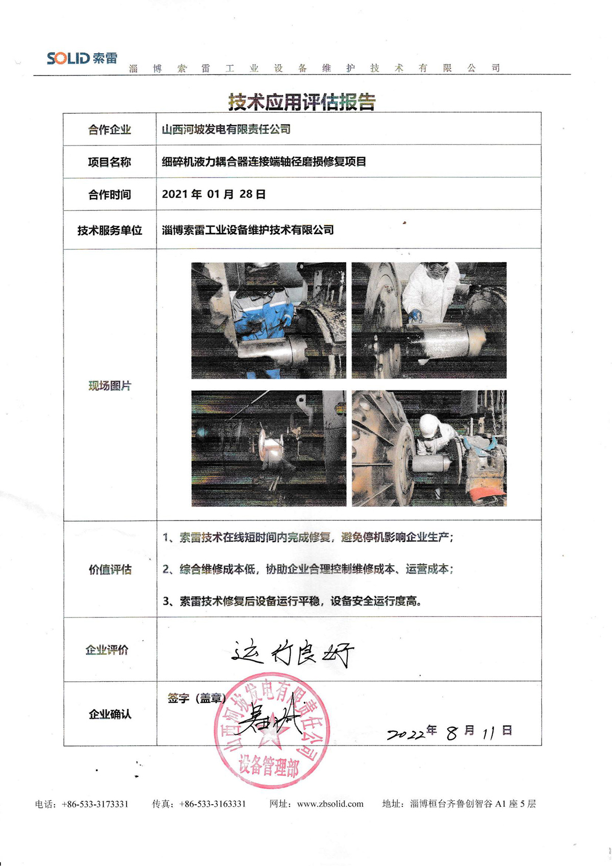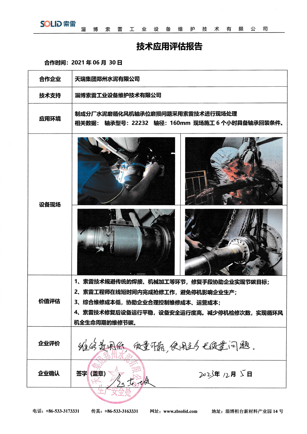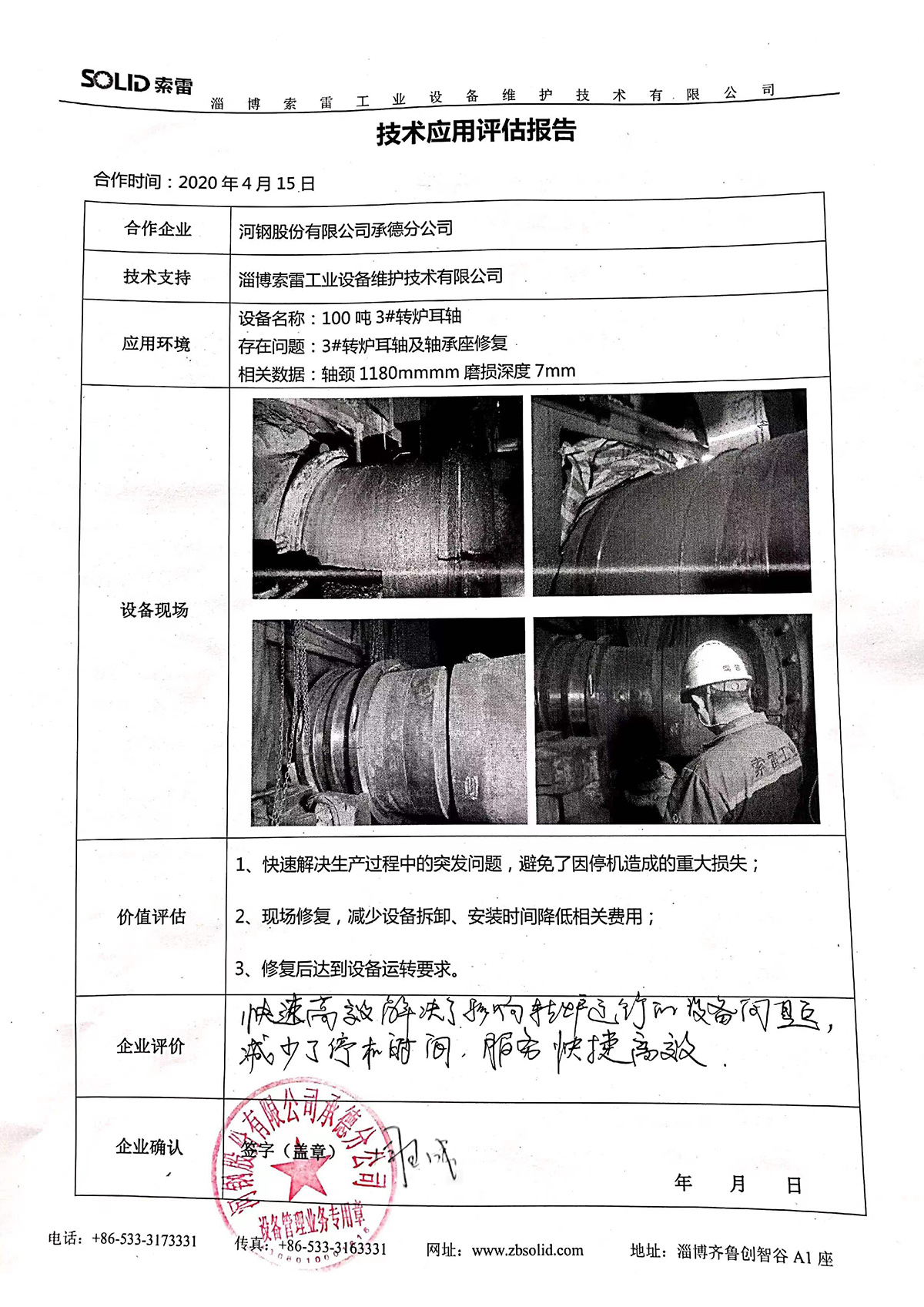 淄博索雷工業設備維護技術有限公司(簡稱:索雷工業)始創于2014年,是領先的碳納米聚合物材料開創者及應用服務商。公司業務及經營網絡遍及全國31個省、自治區和直轄市,目前,主營業務隨“一帶一路”已拓展至西亞、東南亞、東亞沿線近十余個國家,已與近3000家企業實現合作和提供過上萬次的在線快修技術支持與可靠性高價值服務。